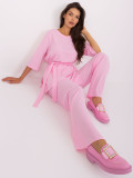 Predstavljamo vam svetlo roza ženski casual komplet, ki je idealen za vsakodnevno nošenje. Ta eleganten set je sestavljen iz udobne bluze s 3/4 rokavi in širokimi hlačami, ki so zasnovane tako, da zagotavljajo maksimalno udobje in stil. Gladek vzorec in visok pas hlač dodajata moderni pridih temu outfitu, medtem ko prugasta tkanina in stranske žepe zagotavljajo praktičnost. Komplet je izdelan iz kakovostne mešanice 65% bombaža in 35% elastana, kar zagotavlja prijeten občutek na koži in prilagodljivost pri nošenju. Ta obleka je odlična izbira za sprehode po mestu ali poletne dni. Ne pozabite si ogledati tudi tabele velikosti, da izberete pravo velikost zase!